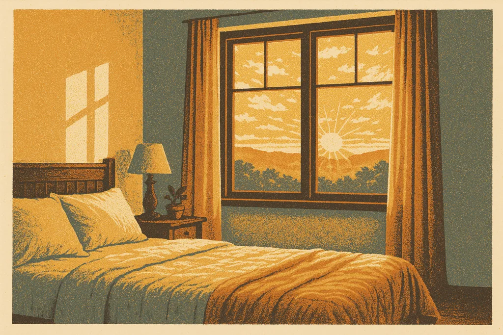 Soft light calls to me with the understanding that every minute brings me closer to home. Like a humble raft, my bed will take me there.