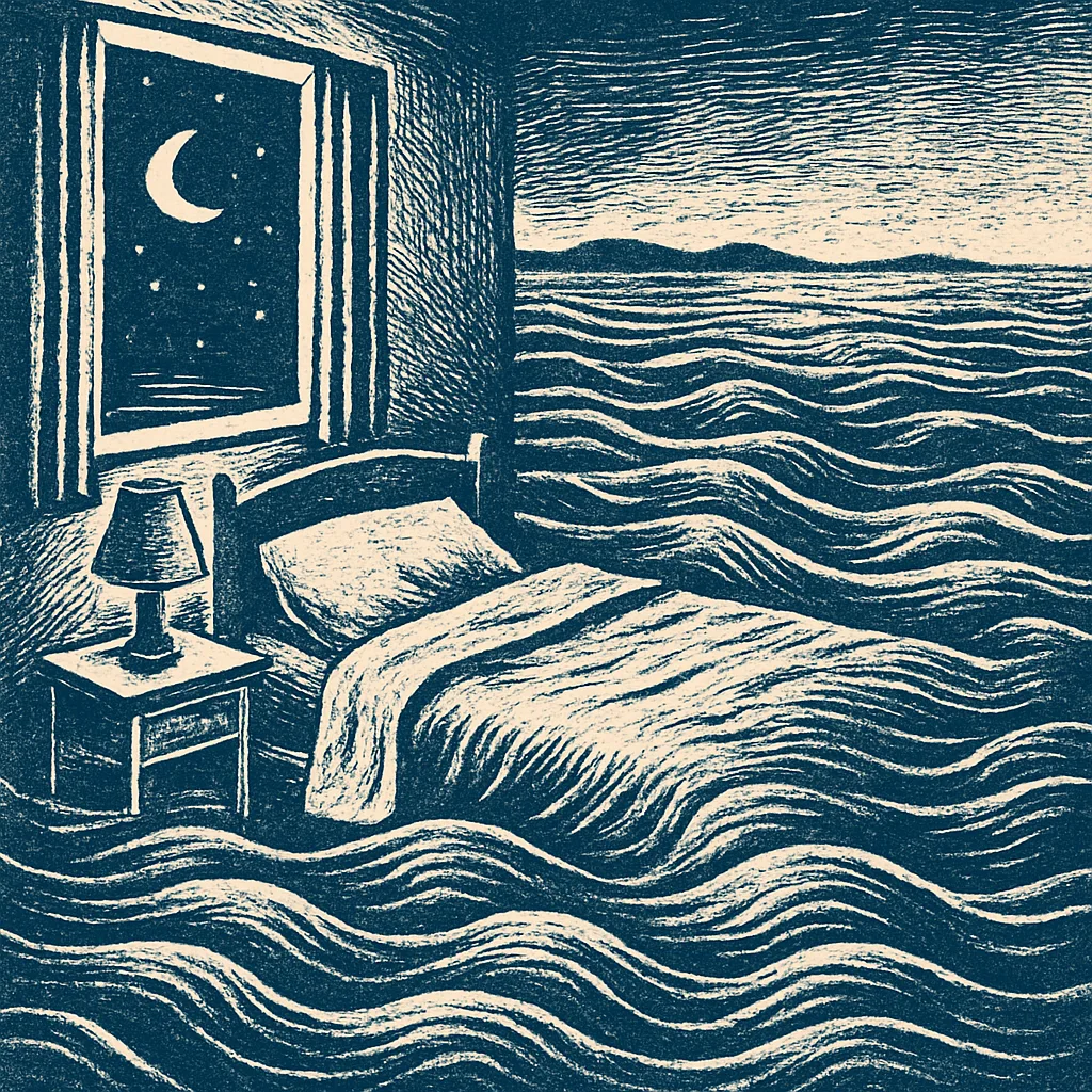 Sleep is on the other side of the undulating ocean. To get to your destination, you will need to swim through the ages of time. It will take you a while, but when you reach your goal, the soft warm sheets will be waiting for you, crumpled by the dreams you had last night. You didn’t make the bed. Why would you when you have an ocean yet to swim through?