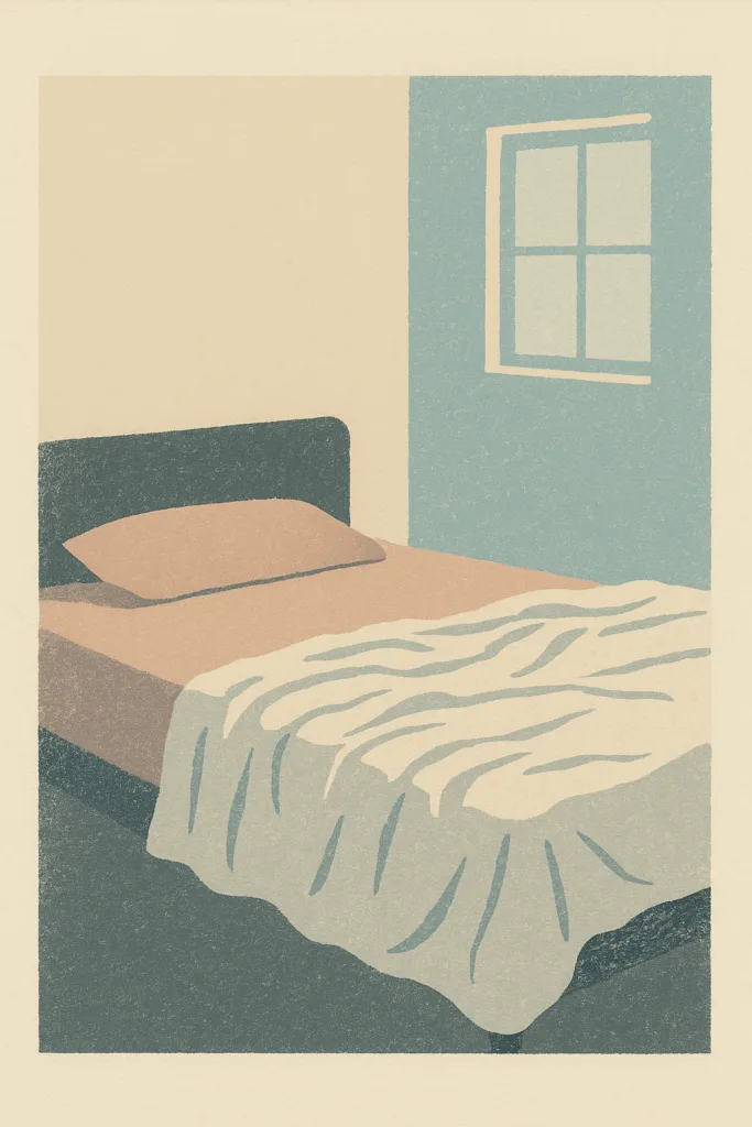 Softly weightless air surrounds me. Forever patient, the bed becomes home. Drifting softly down, I finally feel peace.