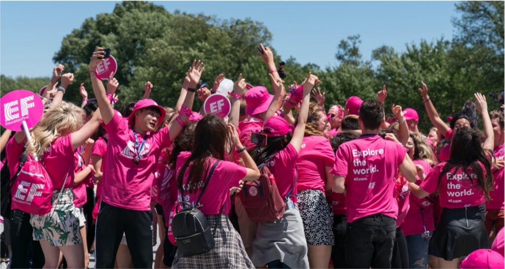 For this event, I decided to bet on people. We flew in 72 EF Ambassadors from 31 countries and outfitted them head-to-toe in EF’s signature pink. If our brand promise is “explore the world,” then I thought we should bring the world to DC.